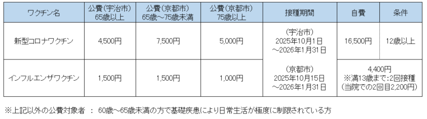 インフルエンザ・新型コロナワクチン接種のお知らせ